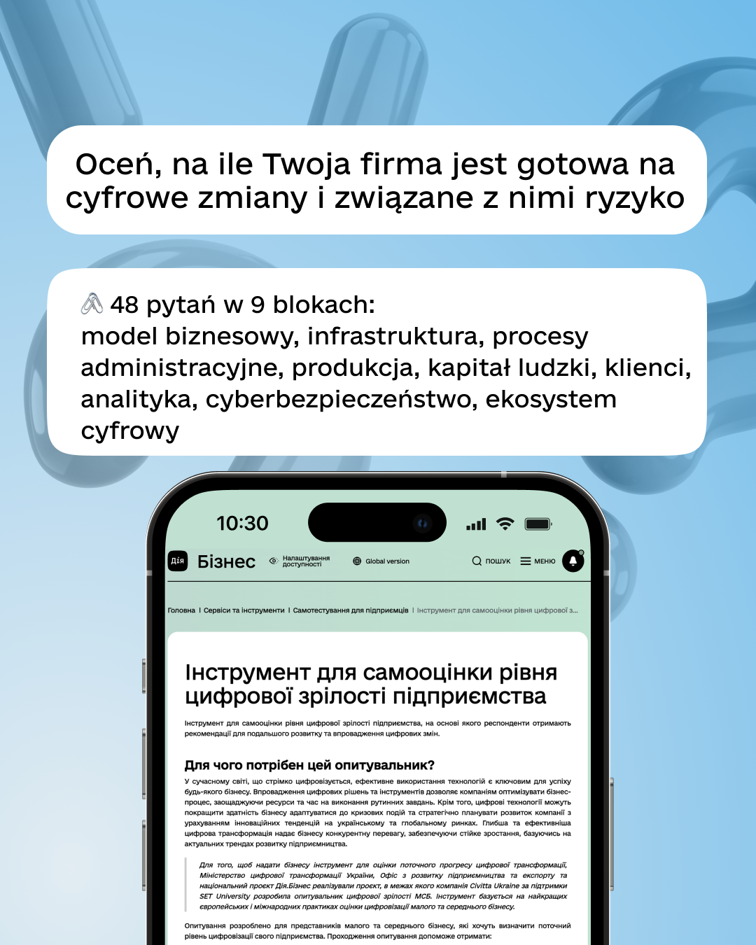 🖇️Na portalu Diia.Business znajduje się kwestionariusz «Narzędzie do samooceny dojrzałości cyfrowej Twojej firmy» — krótki test, który pozwala zrozumieć, na ile Twoja firma jest przygotowana na cyberzagrożenia